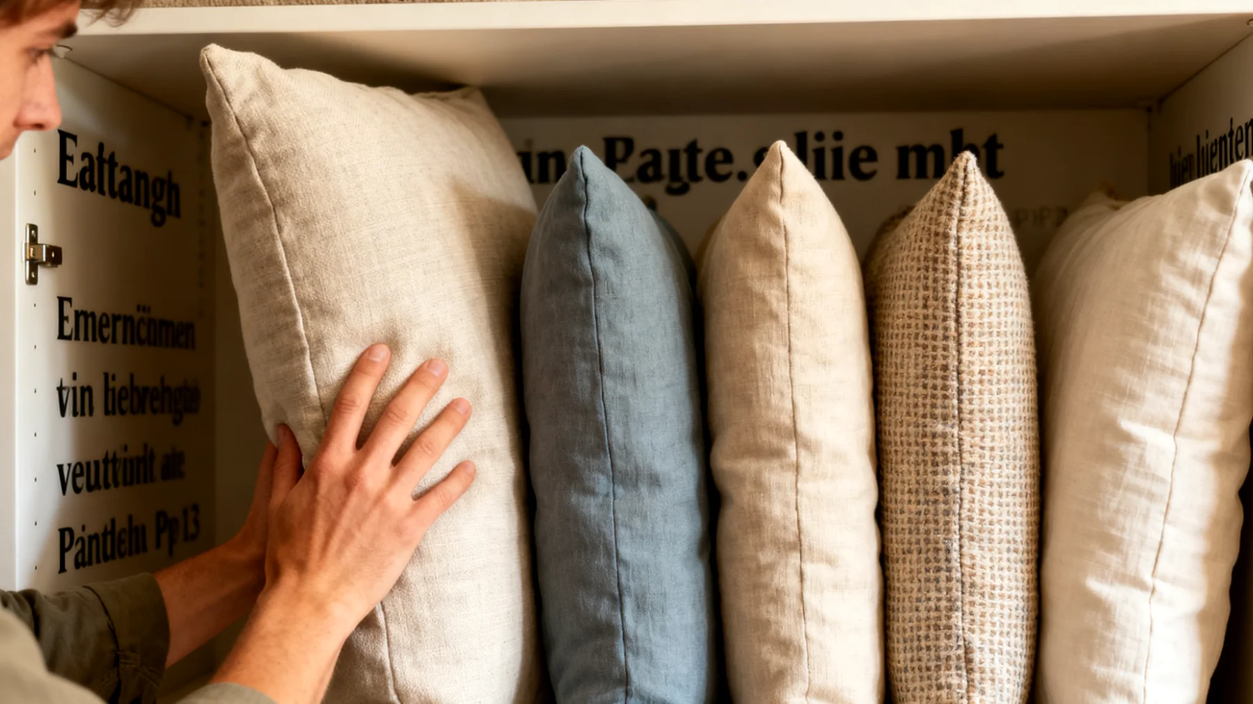 De logica achter deze benadering is intuïtief aantrekkelijk: wanneer kussens verticaal staan, rust het gewicht op hun rand of zijkant in plaats van dat de volledige massa van andere kussens op hun oppervlak drukt. Dit zou in theorie kunnen helpen bij het behouden van de structuur en vorm van het vulmateriaal. Bovendien maakt verticale opslag het gemakkelijker om een specifiek kussen te pakken zonder de hele stapel te moeten verstoren, wat een praktisch voordeel biedt in het dagelijks gebruik.